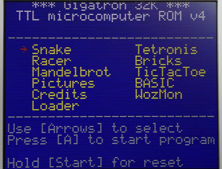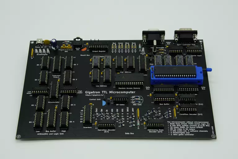 The Gigatron TTL is a retro-style 8-bit microcomputer (without microprocessor), where the CPU is implemented by a set of TTL chips instead of a single microprocessor, imitating the hardware present in early arcades.