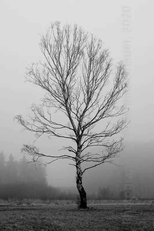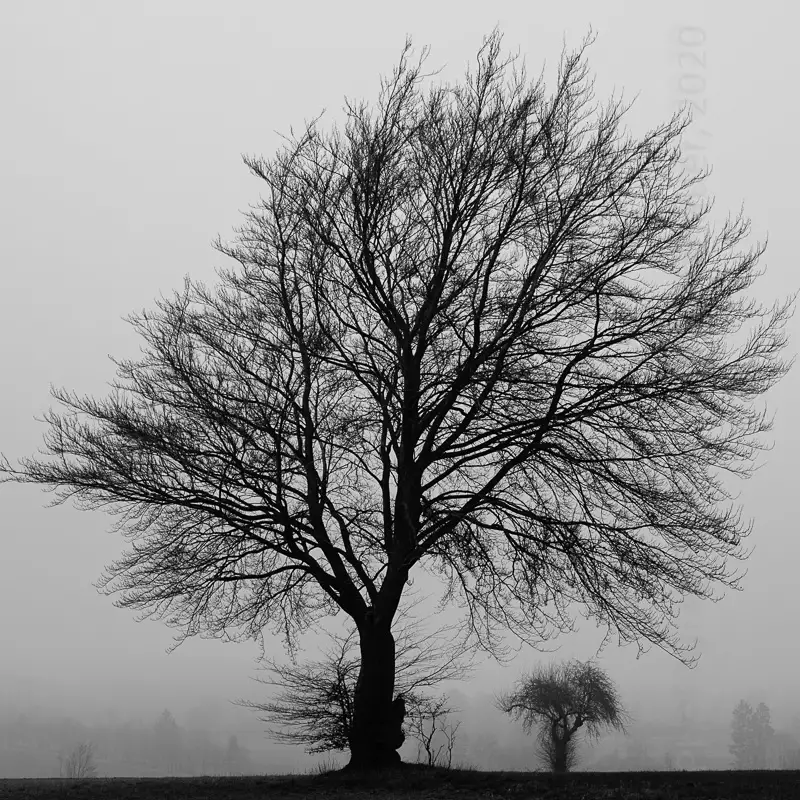 The portfolio MISTY shows photographs of trees in fog, mist and haze. 8 images were shot during the Corona year 2020.
