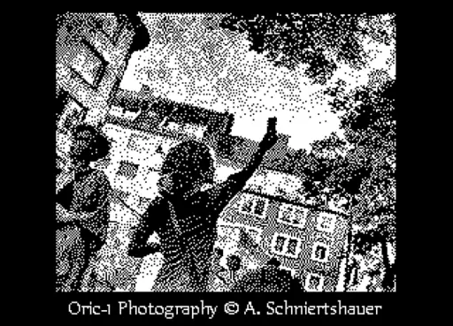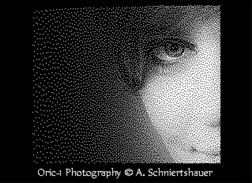 The portfolio ORIC-1 shows people I met in Aachen as pixelated / dithered images, specially produced to view on the Oric-1, a 8-bit home computer from the year 1983. The Oric-1 has a 8-bit 6502A processor @ 1 MHz and 16 KB or 48 KB RAM and 16 KB ROM. The graphic “HIRES” (high resolution) mode has 200 rows of 240 pixels with additional 3 rows a 40 characters of text and has a 3-bit RGB palette and can display 6 colors + black and white. Because of the limited color palette most of the images in this portfolio are dithered to create the illusion of “color depth”.