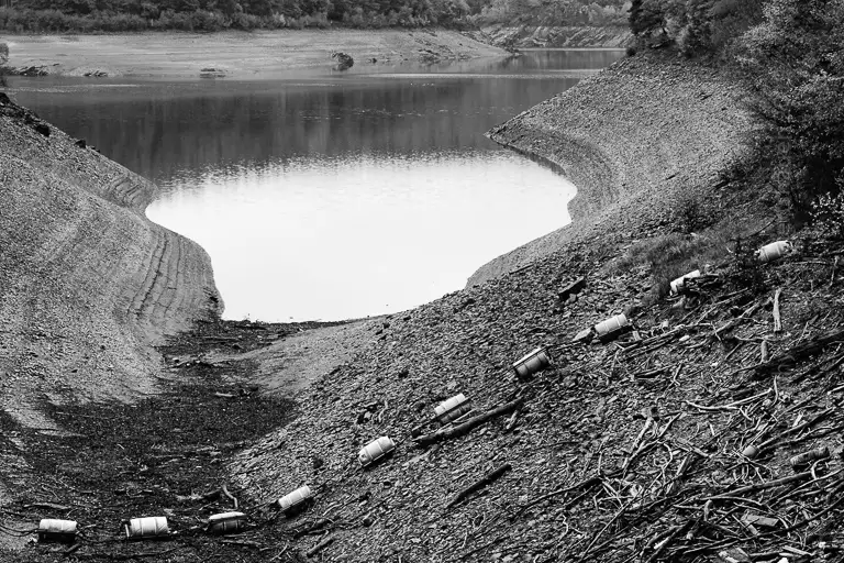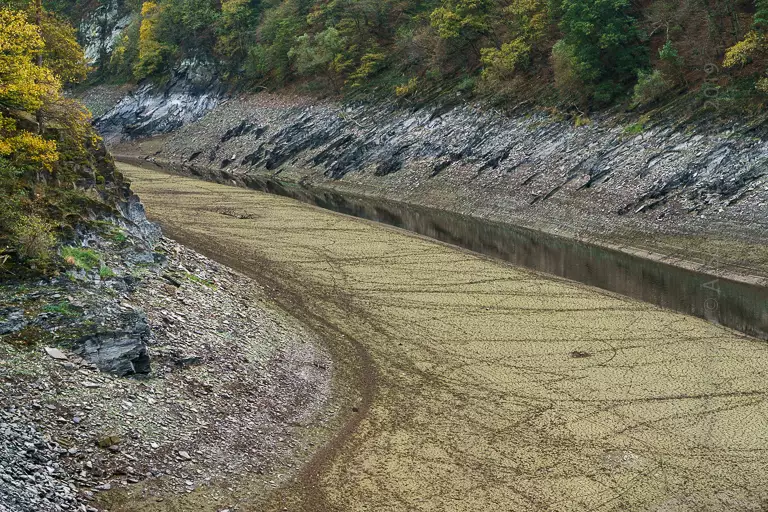 In the portfolio TROCKENHEIT 2018 I show 7 digital photographs in black & white and color shot at 2018-10-29 showing the dryed out Urftsee / Urfttalsperre in the Eifel.